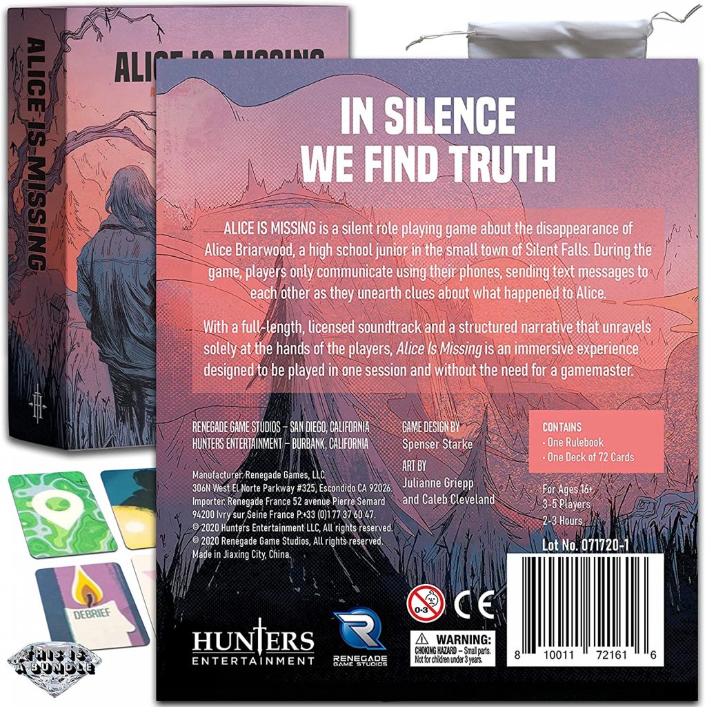 این بازی دو سال پیش و بعد از یک کمپین موفقیت آمیز کیک‌استارتر معرفی شد. Alice Is Missing علاوه‌بر افتخاراتی مانند جایزه Ennie برای بهترین بازی سال، طرفدارهای جوان بسیار زیادی را به خود جذب کرد؛ تا حدی که طرفدارهای این اثر به‌طور مداوم به انتشار آثار هنری خود در ارتباط با این بازی می‌پردازند.