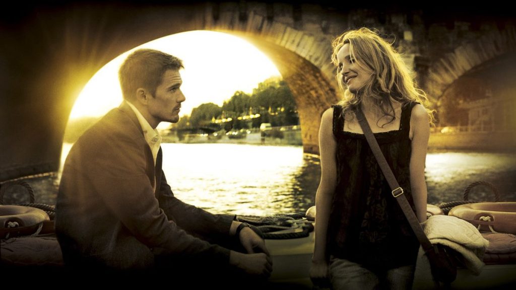 «پیش از طلوع» اولین فیلم سه‌گانه و اولین روبرویی ما با جادوی یک عاشقانه روزمره بود؛ رابطه میان جسی (اتان هاوک) و سلین (جولی دلپی). این دو بازیگر در فیلمنامه‌نویسی با لینکلیتر همکاری کردند تا اثر بتواند هر چه بیشتر برای بازیگرانش درونی شود.